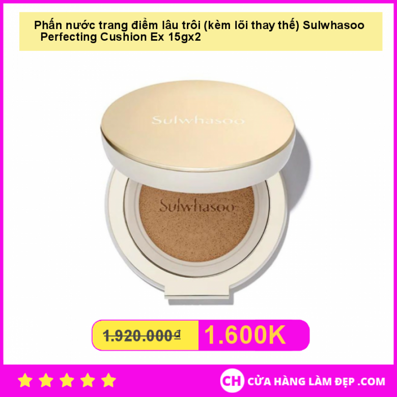Hiện tại, Sulwhasoo Perfecting Cushion Ex đang được bán tại hệ thống Cửa hàng làm đẹp với giá 1.600.000 VND. Đây là một mức giá rất hợp lý cho một sản phẩm chất lượng cao như vậy. Đặc biệt, sản phẩm có kèm lõi thay thế, giúp bạn tiết kiệm và sử dụng một cách hiệu quả.