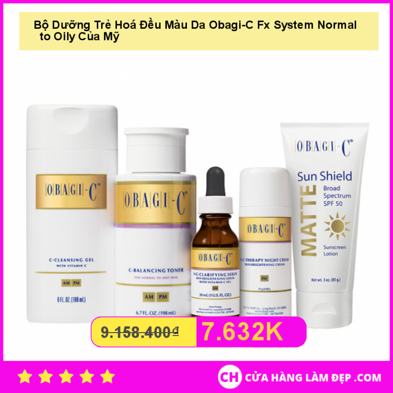 Một khoản đầu tư xứng đáng cho một cuộc cách mạng làn da. Bộ sản phẩm Obagi-C Fx System Normal to Oily hiện đang có mức giá cực kỳ ưu đãi tại Hệ Thống Cửa Hàng Làm Đẹp.