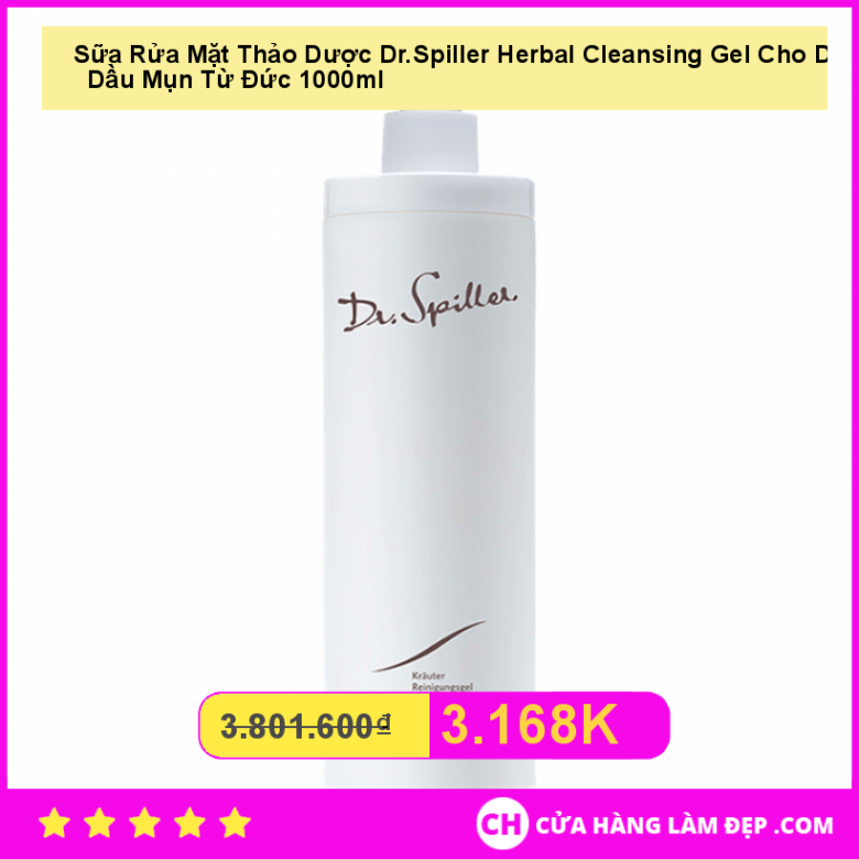 Sữa Rửa Mặt Thảo Dược Dr.Spiller Herbal Cleansing Gel Cho Da Dầu Mụn 1000ml có giá bao nhiêu? Tại hệ thống cửa hàng làm đẹp, Sữa Rửa Mặt Thảo Dược Dr.Spiller Herbal Cleansing Gel Cho Da Dầu Mụn 1000ml có giá: 3.168.000 VND